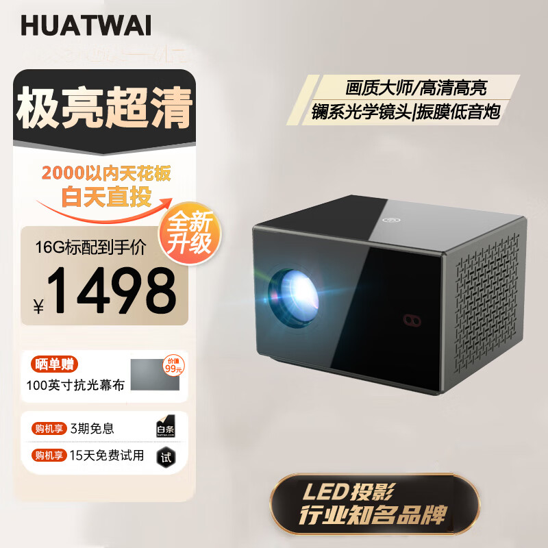 HUATWAI2025新款高亮家用投影仪 4K超高清家用卧室智能家庭影院 全自动校正对焦教育办公投影机 【超亮款】16G 白天直投 极清超亮 4K巨幕影院
