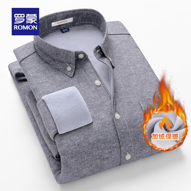 罗蒙(ROMON)长袖保暖衬衫男新款加绒加厚格子衬衫中青年男士商务休闲衬衣 灰色 2XL (175)