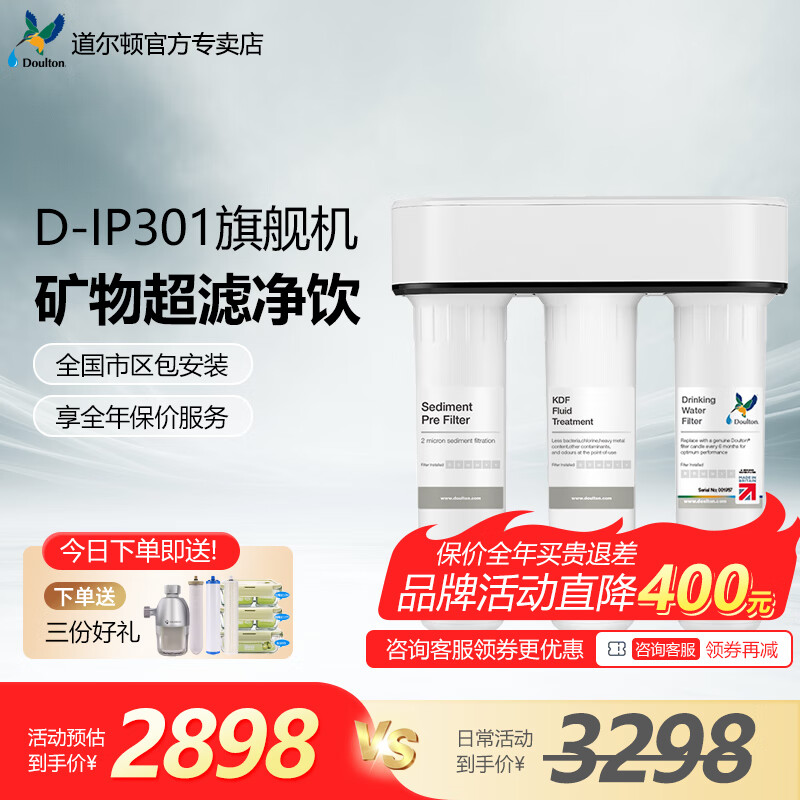 道尔顿(Doulton) 道尔顿净水器家用台下直饮机DIP301无废水不插电超滤机陶瓷滤芯可清洗厨下净饮机 白色