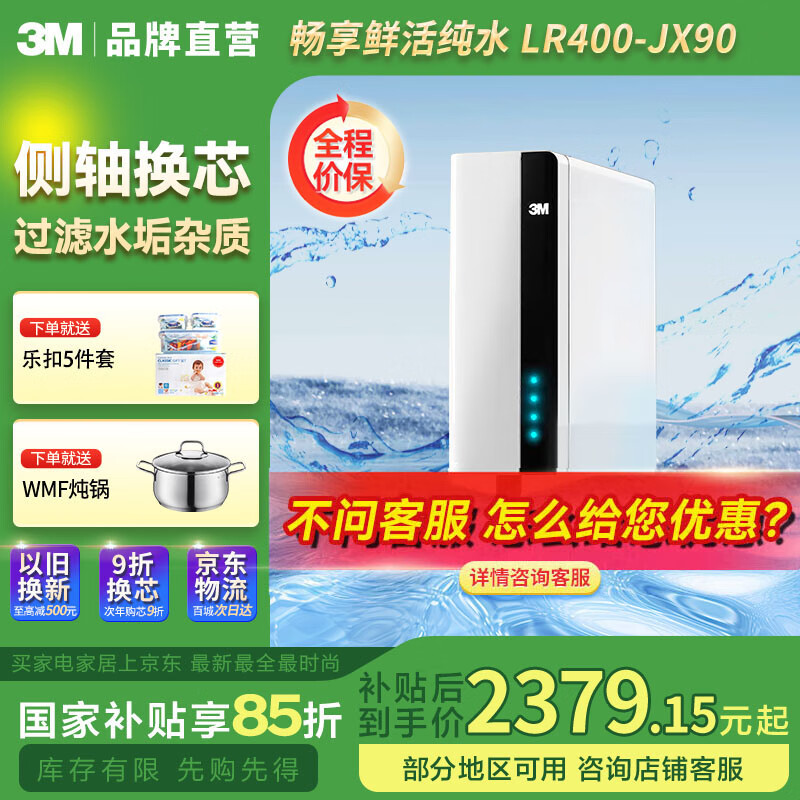 3M国家补贴净水器家用厨下式直饮RO反渗透4000L去水垢无桶大通量净水器纯水机净饮机 LR400净饮机 LR400-JX90