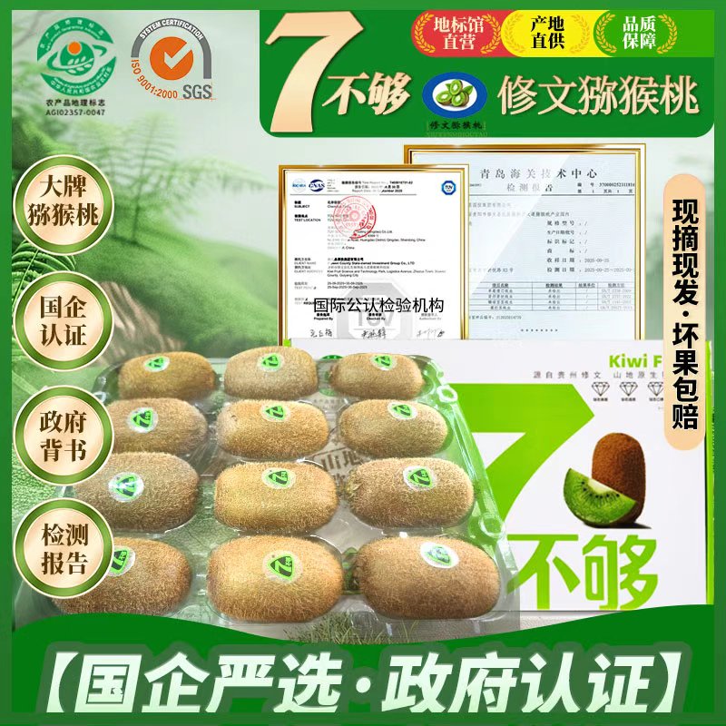 【29.9包邮】7不够 贵州修文猕猴桃生态原香16枚-(60g-70g)买一赠一,到手32枚