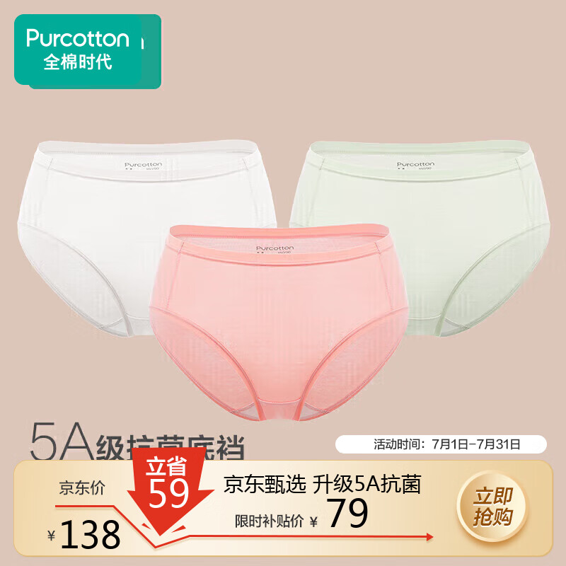 全棉时代女士内裤女全棉抗菌中腰三角裤3条装 蜜恋粉+牛油果绿+奶白 165