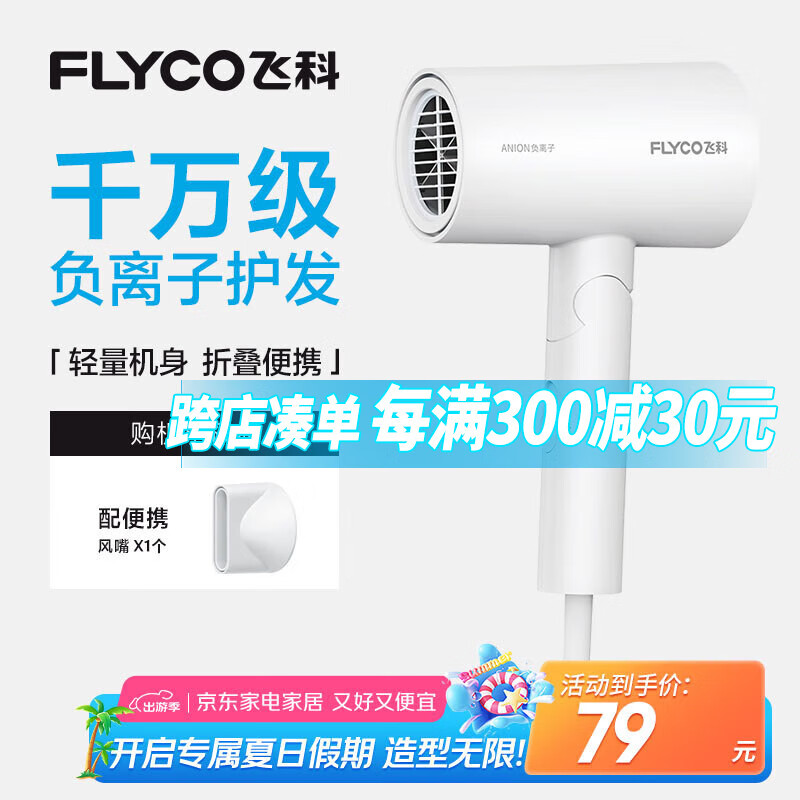 飞科(FLYCO)负离子电吹风机家用便携出游速干冷热风大功率吹风筒FH6276