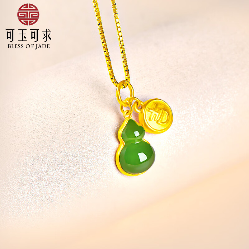 可玉可求金镶玉和田玉吊坠 精致时尚黄金镶嵌碧玉锁骨链 足金玉石吊坠 款三 M10150a