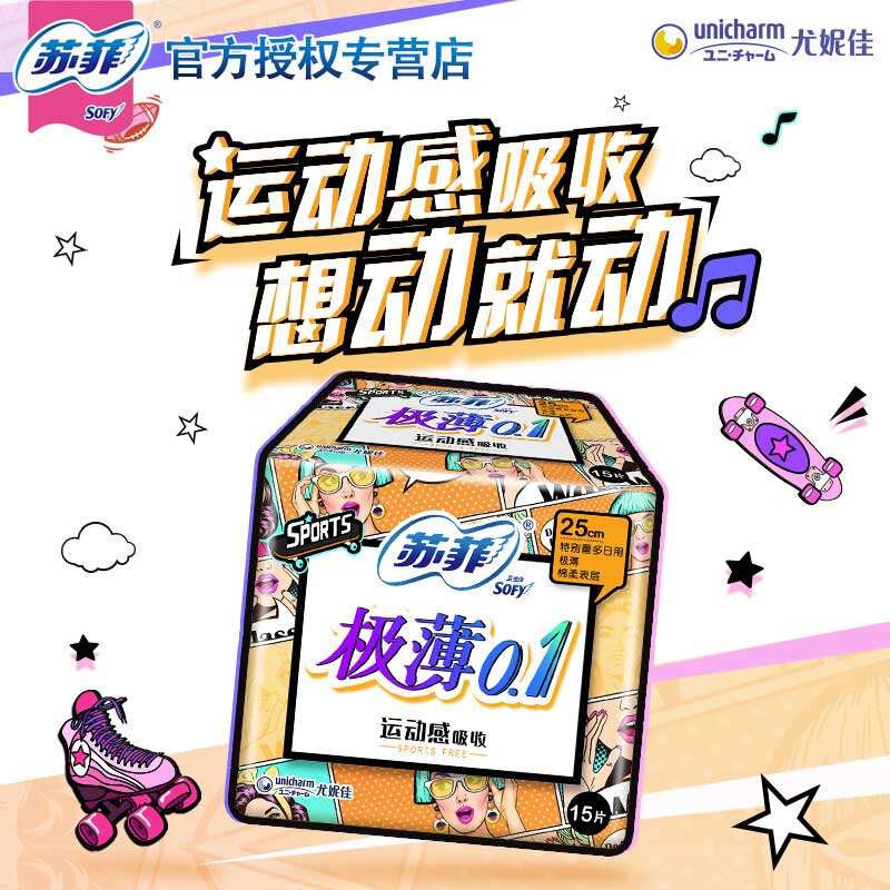 苏菲卫生巾弹力贴身极薄0.1棉柔表层姨妈巾 日用 250mm-15片