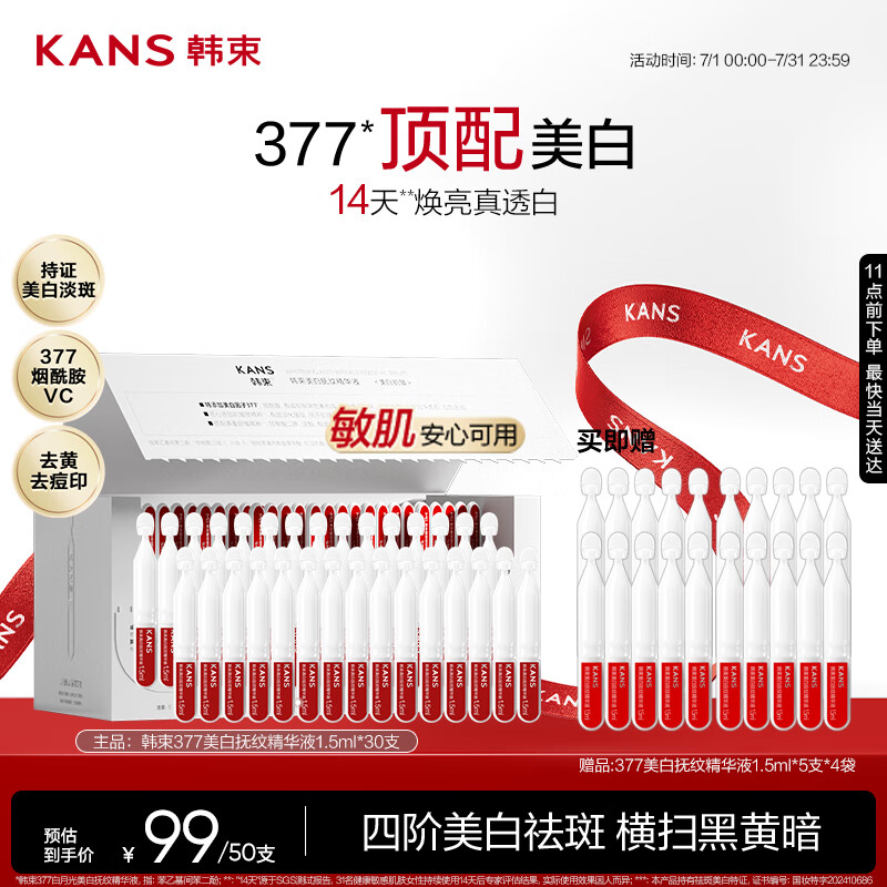 韩束377美白精华次抛精华1.5ml*30支淡斑祛斑去痘印护肤品礼物送女友