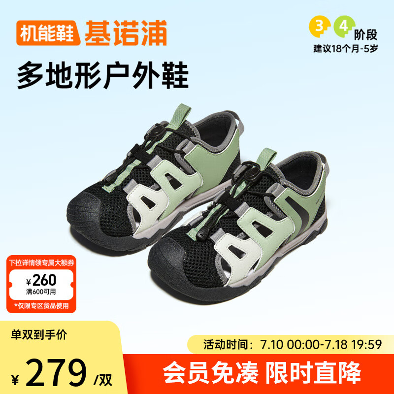 基诺浦 儿童学步鞋25夏季透气凉鞋 18个月-5岁男女宝宝机能鞋GW1761 木犀绿/黑色/中灰 22.5 140mm 适合脚长136-145mm