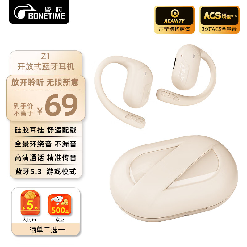 BONETIME骨时z1商务通勤蓝牙耳机长续航主动降噪通话耳机挂耳式华强北耳机久戴不痛挂耳式舒适耳机 亮肤色【舒适+HIFI音质+超长续航