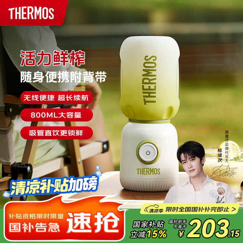 THERMOS【国家补贴】膳魔师便携式榨汁机 榨汁杯家用多功能小型电动奶昔机随身迷你果汁机 EHA-2214A-BG