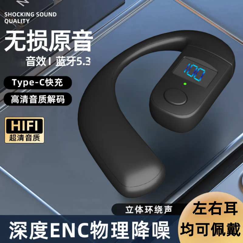 鑫羽音【严选直发】【左右耳均可戴】2024新款空气骨传导蓝牙耳机 超长 黑-万元音质+超长续航+高清通话 【左右耳均可佩戴】蓝牙5.4V