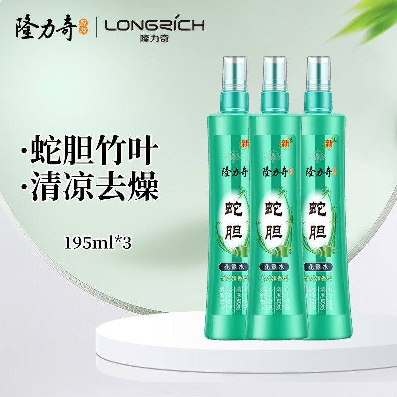 隆力奇蛇胆花露水祛痱清凉爽肤竹叶清香型195mL 3瓶
