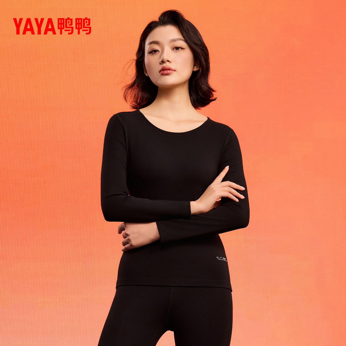 鸭鸭保暖内衣男女同款秋冬季秋衣秋裤情侣款保暖套装【热力鸭系列】 曜岩黑色(女) M