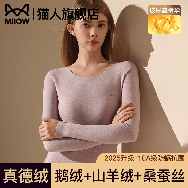 猫人保暖内衣上衣2025秋冬款女士羊毛加绒加厚无痕内衣打底棉毛衫女款 香芋紫色 L 【推荐100-120斤】