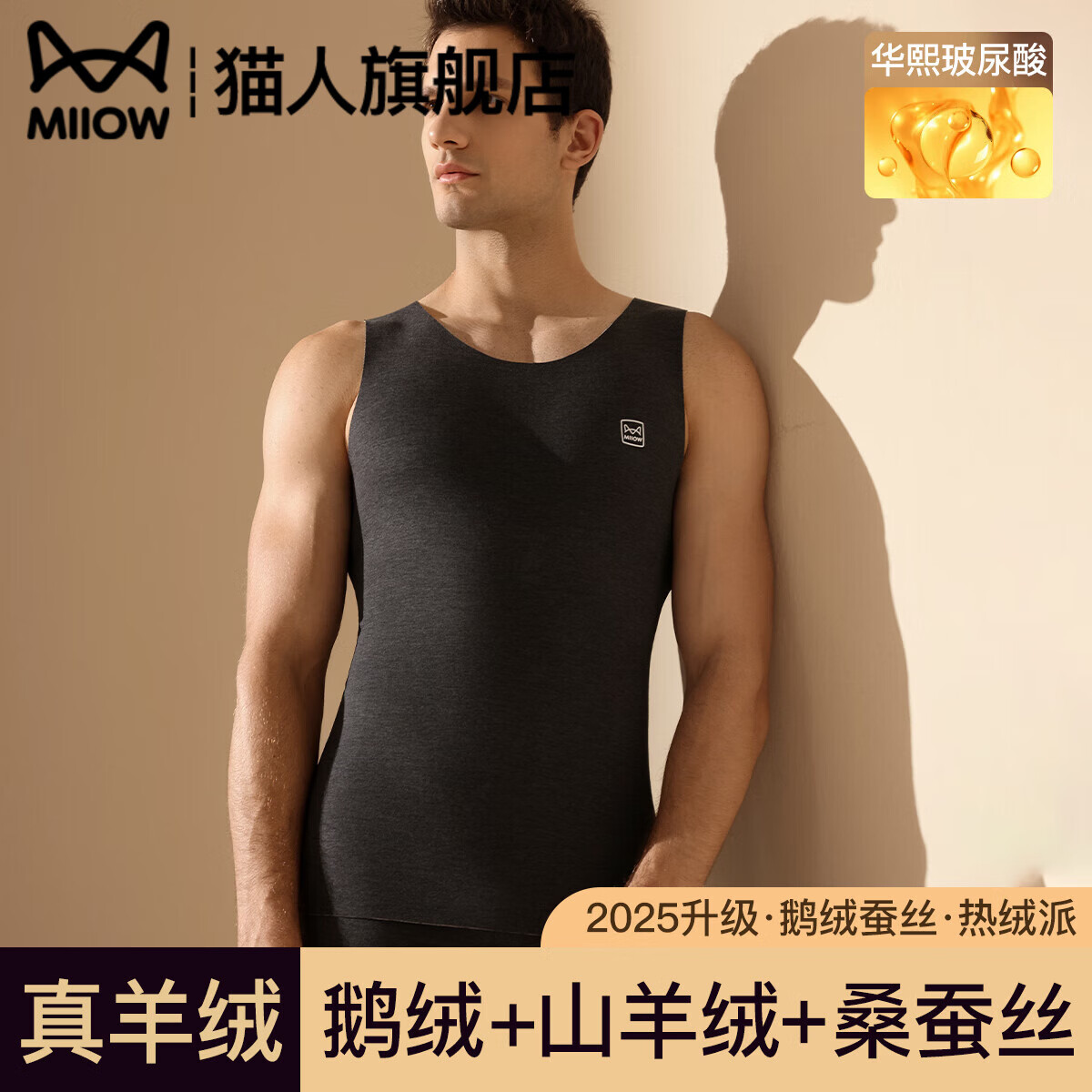 猫人秋冬季保暖背心男款2025新款冬天运动吸汗磨毛休闲圆领抗寒内衣男 深灰色 2XL 【推荐160-190斤】