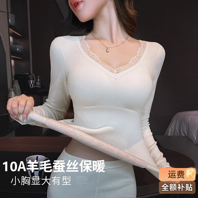 多情猫羊绒蚕丝保暖内衣女带胸垫免穿文胸长袖打底内搭秋衣2025秋冬新款 【长袖版】香槟上衣 L 【100-120斤】【长袖款】