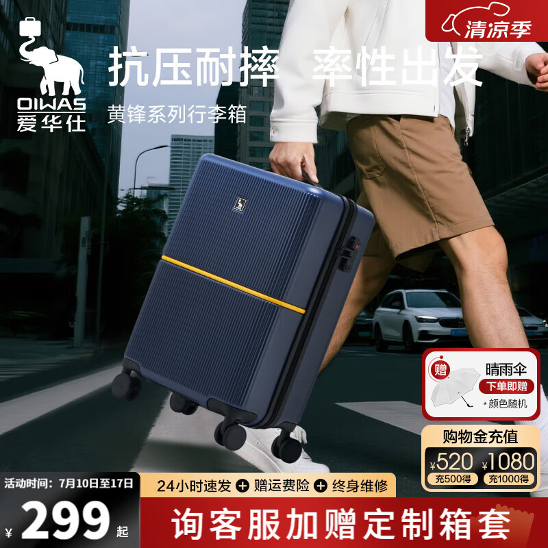 爱华仕黄锋系列轻便行李箱20寸可登机箱大容量24英寸旅行拉杆箱 星空蓝 24英寸