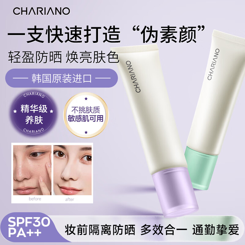 CHARIANO韩国晶莹润色防晒隔离霜遮瑕三合一妆前提亮打底服帖持久素颜霜 奇姬#01亮颜紫【暗沉/偏黄肤色】 35ml/支【韩国进口】官方正品