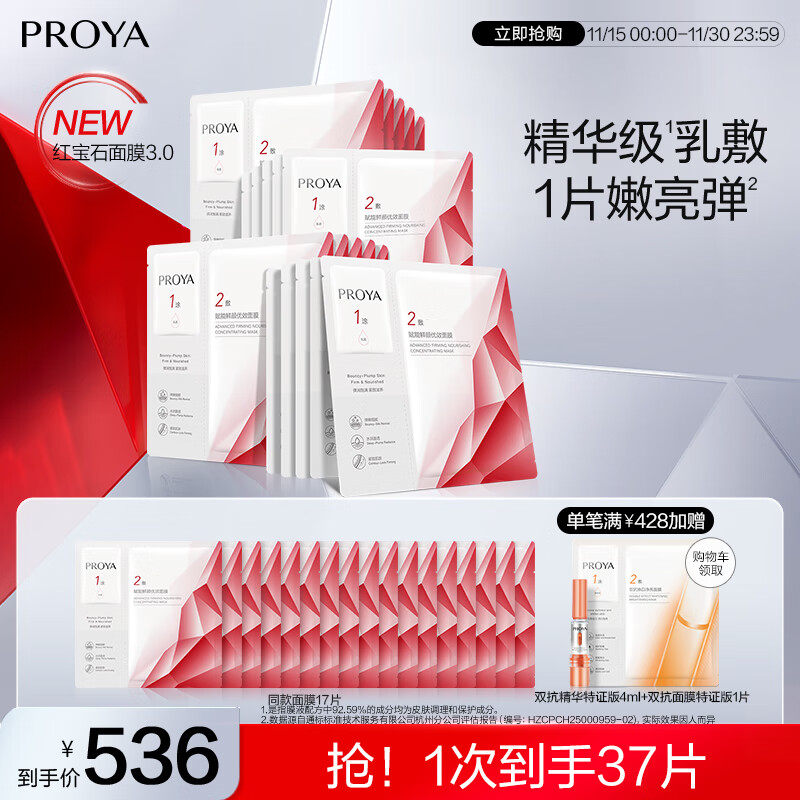 珀莱雅(PROYA)红宝石面膜3.0 干皮补水焕亮肌肤紧致淡纹 37片(含赠)